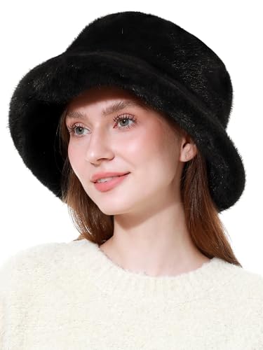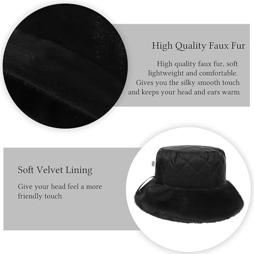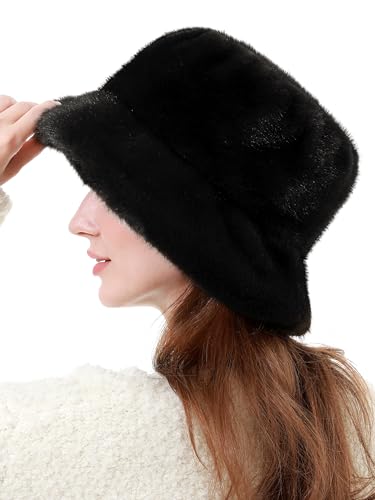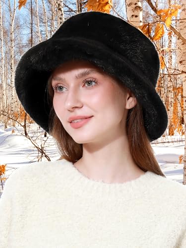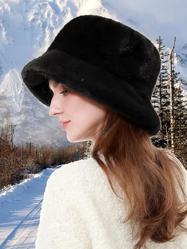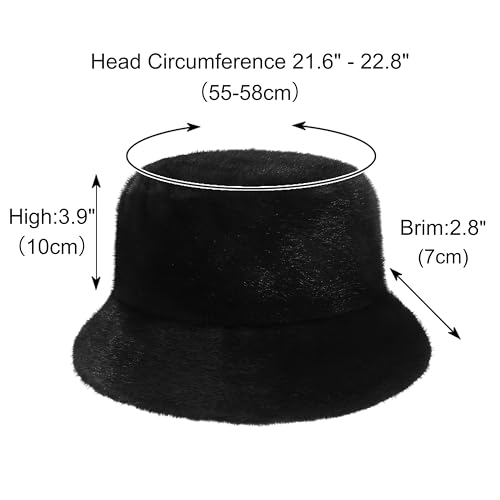 Rulala Fancy - Women's Faux Fur Bucket Hat Winter Short Plush Warm Ladies Fisherman Cap