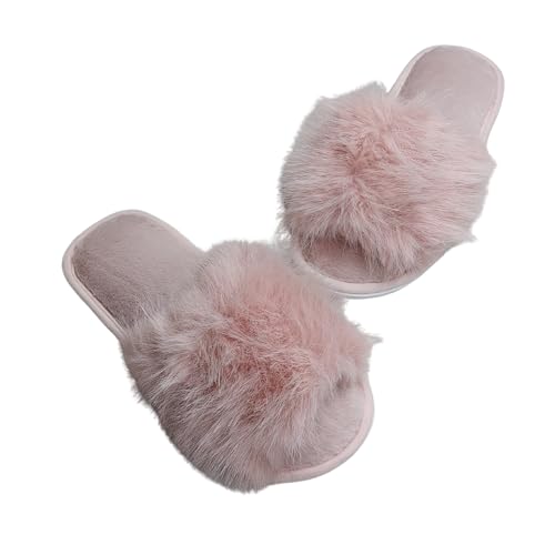 Generic - Women's Faux Fur Open Back Slippers, Pink, Slip On, Indoor and Outdoor Use Size 38/39 - شبشب حريمي مفتوح