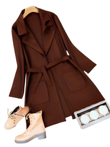 Generic - Women's felt coat with belt, long sleeve, brown, with front pockets, up to 75 kg