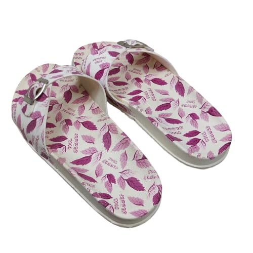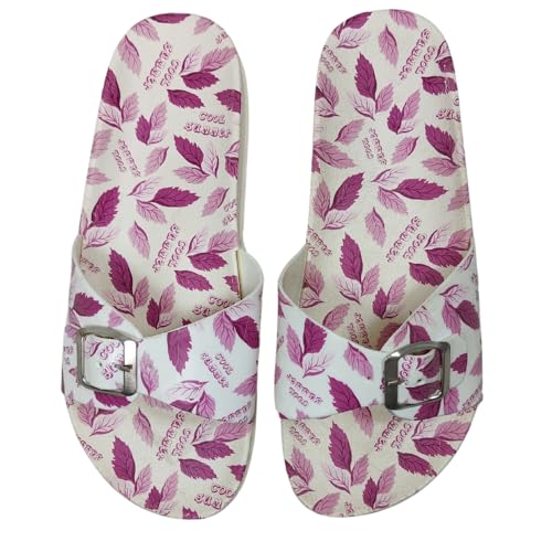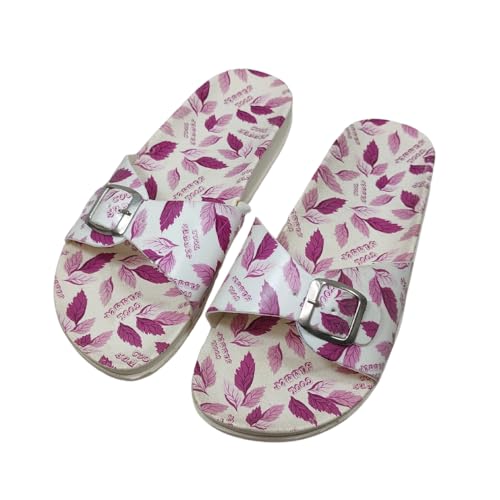 Generic - Women's Floral Print Rubber Slide Sandals, Pink and White Leaf Pattern, Adjustable Buckle Design, Casual Summer Footwear Size 39 - شبشب مطاط حريمي