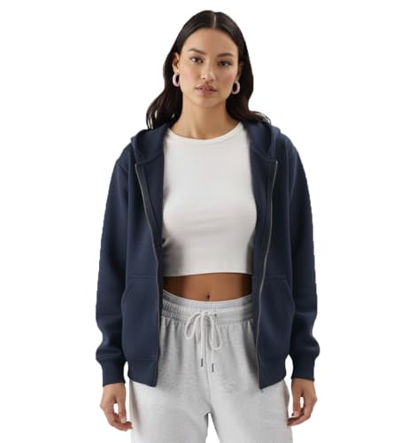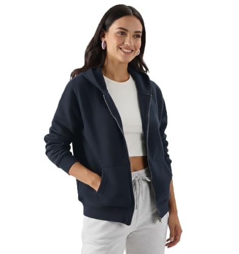 Generic - Women's Full Zip Hoodie, Navy Blue, Long Sleeve, Casual Sportswear