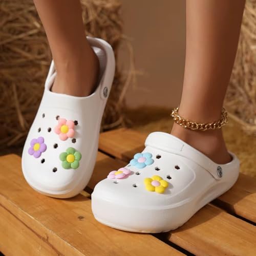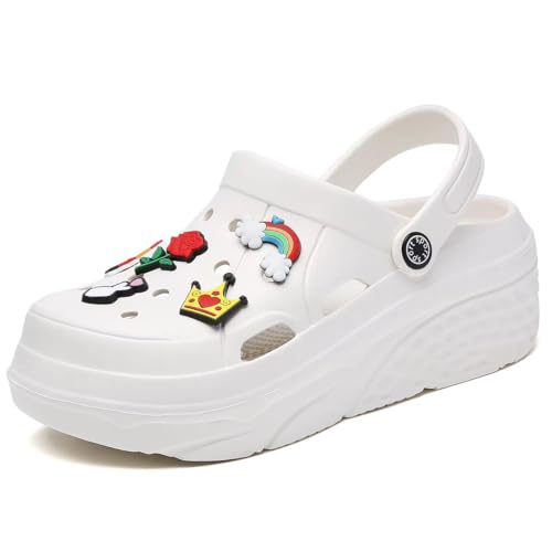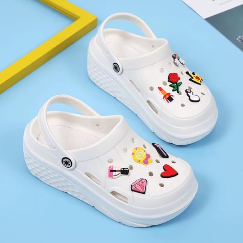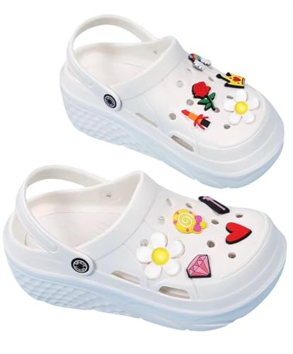 Generic - Women's Girls High Clog - White Slippers with Comfortable Medical Sole - Non-Slip Rubber Material - Perfect for Home, Beach and Street - Accessories Multicolor