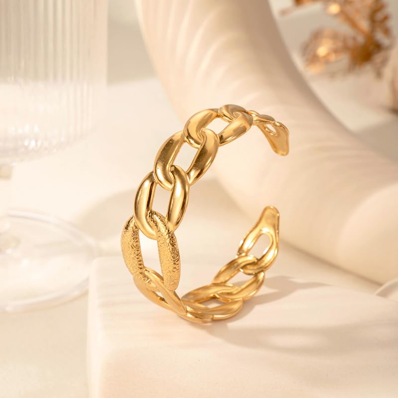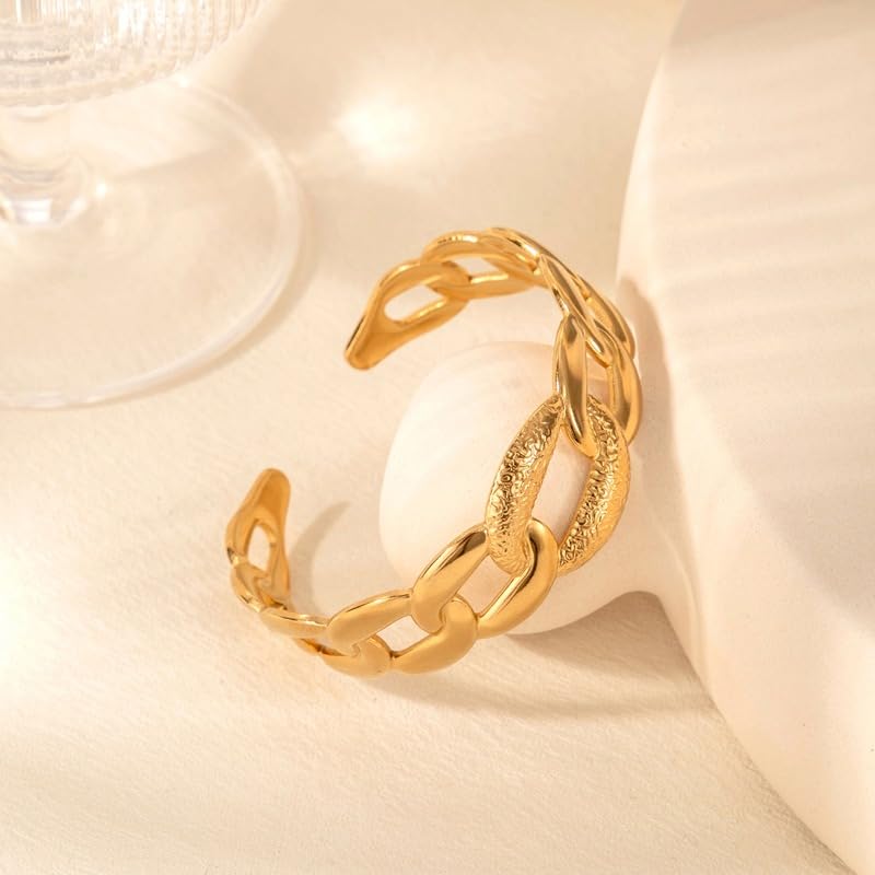 Happy Home - Women's Gold Gold Wide for Women, Upper Bangle Gold Plated Adjustable Open Cuffs Bracelet, Stackable Wrist Cuffs Arm Bands for Women Girls