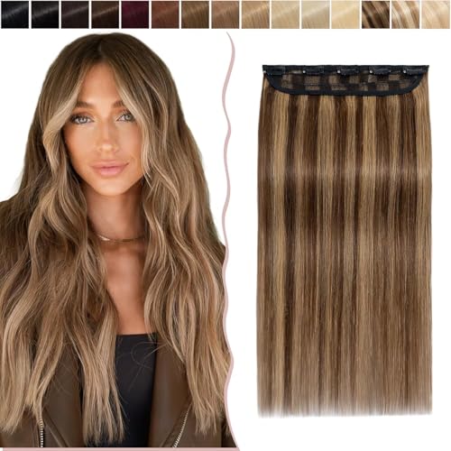 Generic - وصلة باروكة لكامل الرأس للنساء بطول 65 - 70 سم - 150 جرام - باروكة صناعية طبيعية بشعر مفرود مع 5 مشابك، شعر منفوش وغير متشابك- رقم JW243- NO 8H27 - بني متوسط وأشقر داكن