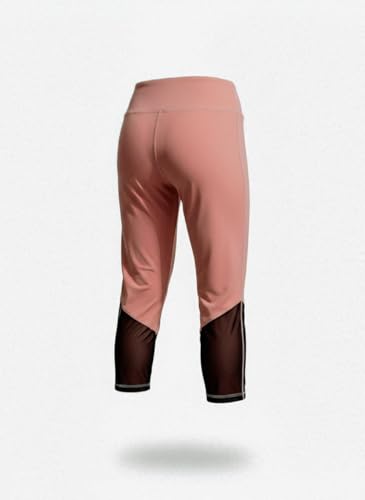 Generic - ليجن رياضي كابري نسائي بخصر مرتفع، بنطلون يوجا وردي مع تفاصيل شبكية سوداء، ملابس جيم مرنة للتدريب والجري