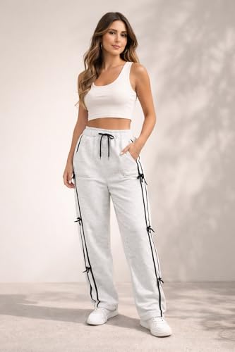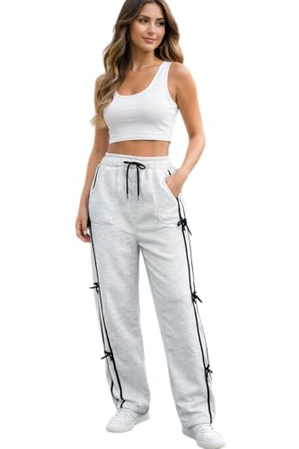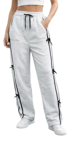 Generic - Women's High Waisted Sweatpants with Side Bow Ties, Grey, Drawstring Waist, Straight Leg Joggers size M