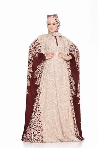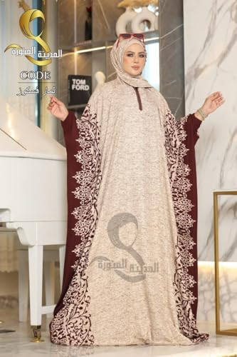 Generic - عباية قفطان للنساء بطباعة زهور، قطن فسكوز، مقاس واحد يصل الى 120 كجم