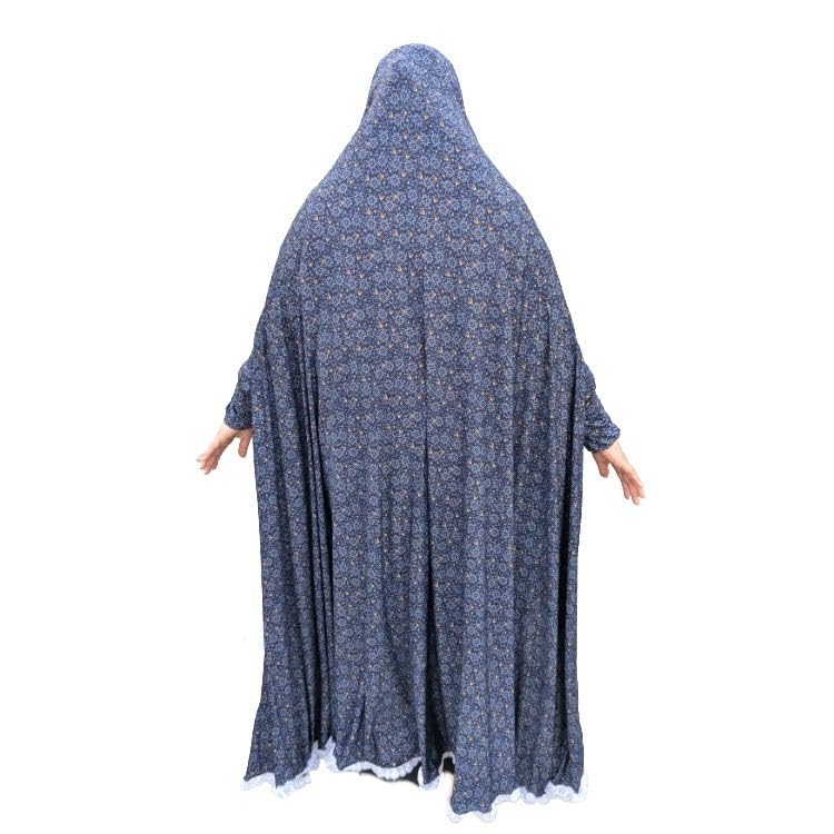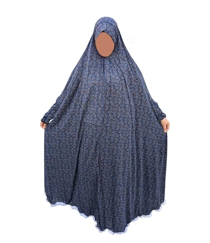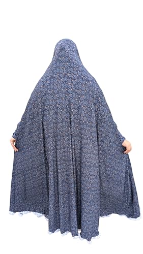 Generic - خمار للنساء بأكمام طويلة فضفاض -من القطن والليكرا - ملحفة نسائية بحواف دانتيل - بتصميم مزخرف
