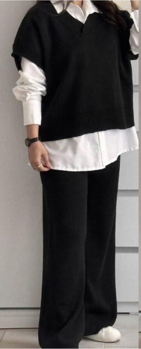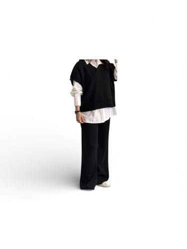 Generic - Women's Knitted Three Piece Set, Black Loose Top with White Long Sleeve T-shirt and Pants, Free Size up to 80KG