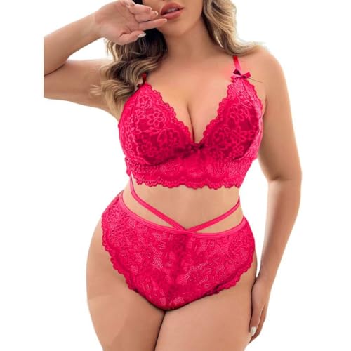 Generic - طقم لانجري نسائي من الدانتيل، مقاس واحد، لون وردي فوشيا، قطعتين