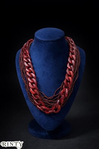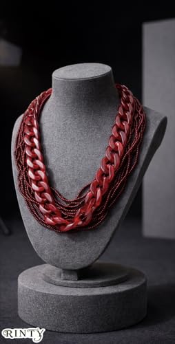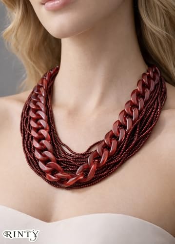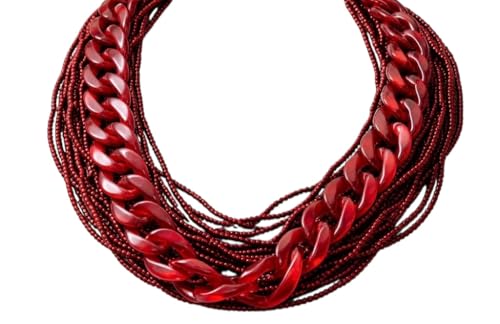 Generic - عقد سلسلة حريمىطبقات متعدد الطبقات بسلسلة حلقات وخرز، أحمر، تصميم عصري جريء