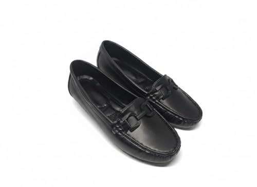 Generic - حذاء بدون كعب للقيادة من الجلد للنساء، لون اسود، حذاء بدون كعب سهل الارتداء مع قطع زينة 172