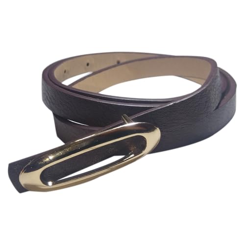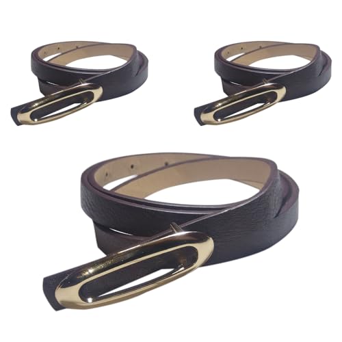 Generic - حزام جلد رفيع للنساء، ابزيم معدن لون ذهبي، جلد بني غامق،01202611007، قطعة 3