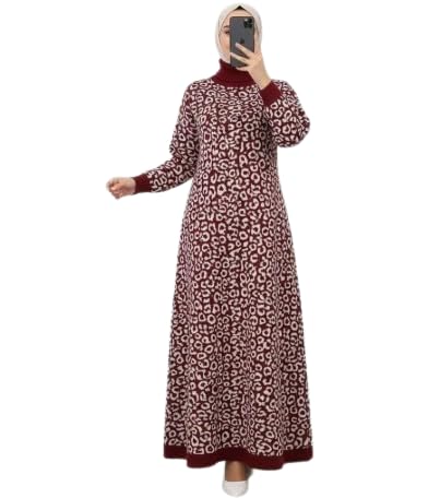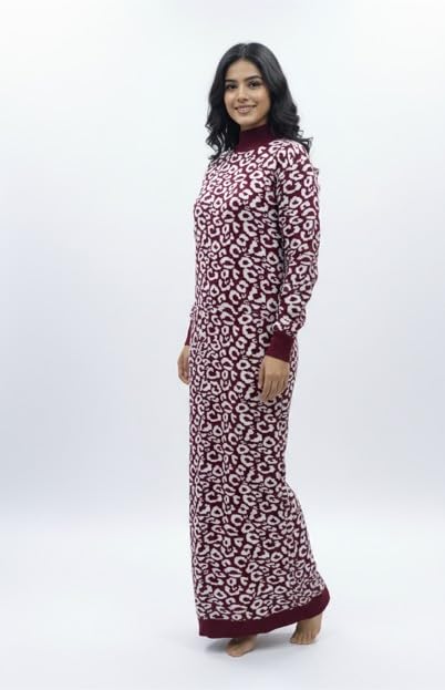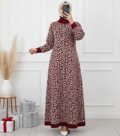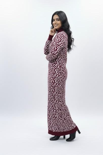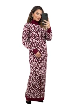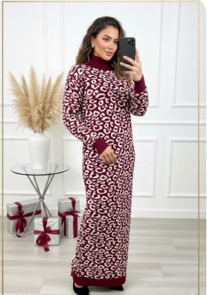 Generic - Women's Leopard Print Knit Maxi Dress – Soft "Agina" Fabric Turtleneck Sweater Dress – Long Sleeve Modest Winter Basic – Black & White Tiger Pattern
