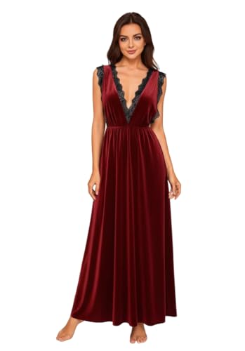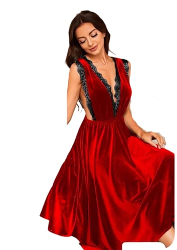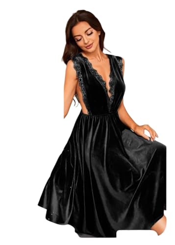 Generic - Women's Lingerie Dress Velvet Long Suspenders Restaurant with Lace Open Sides (One Size Yelps Lahd 85)