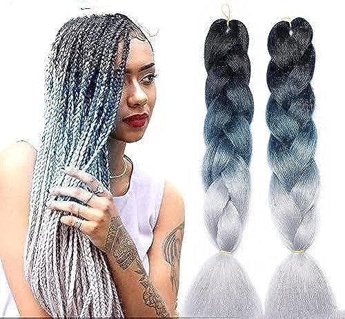 Generic - Women's Long Colorful Box Braids Crochet Hair High Temperature Synthetic Fiber 2 Bundle (Black, Blue, Gray, 24in)