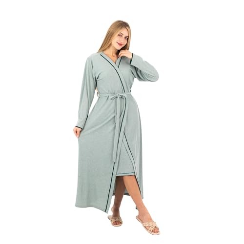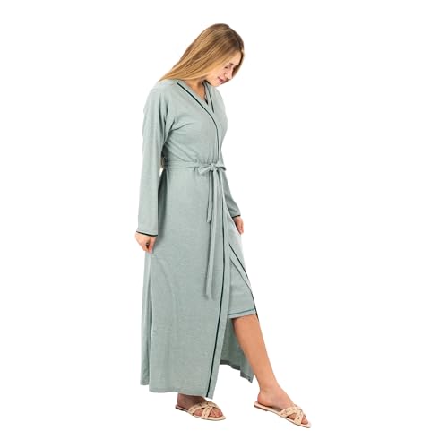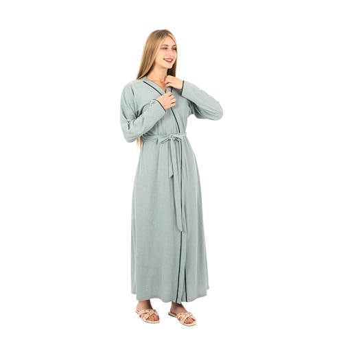 ZECOTEX - روب منزلي طويل من القطن للارتداء فوق الملابس للنساء ناعم وخفيف الوزن بحزام، روب نوم مريح بأكمام طويلة وللاستحمام | ملابس منزلية مريحة وأنيقة