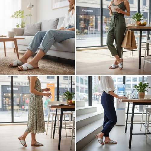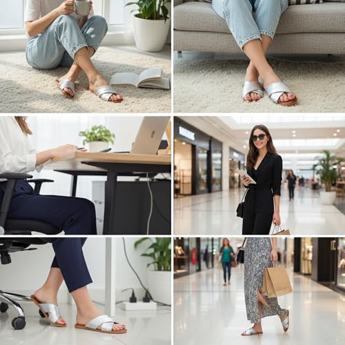 Generic - Women's Luxury Faux Leather Ultra Comfortable Flat Slippers - X Cross Strap Slippers- Slip On Anti-Slip Perfect for Daily Walking, Casual, Shopping and All Casual Occasions (Silver, 39)