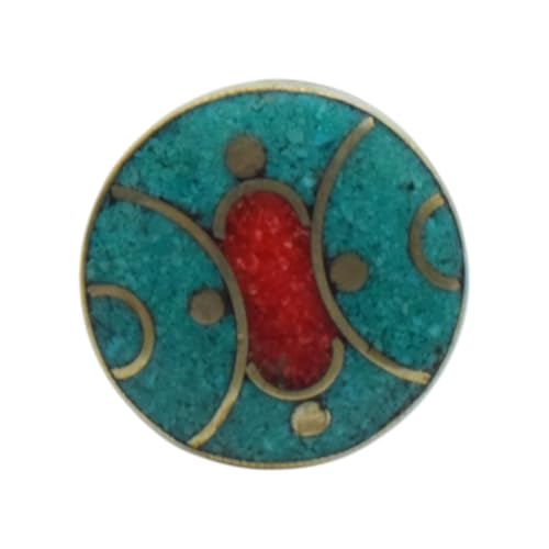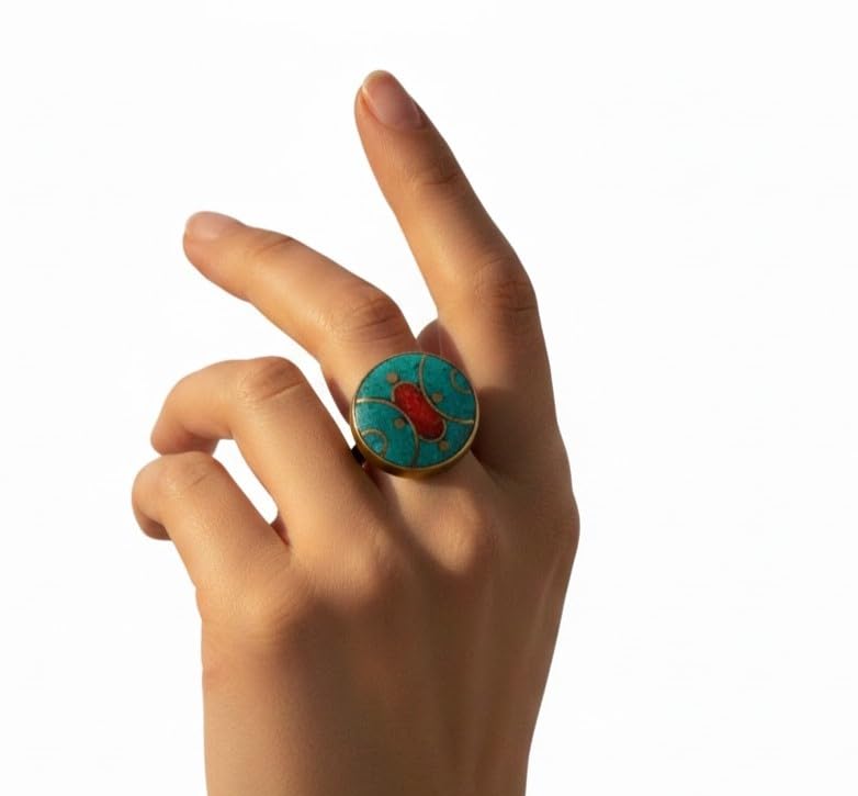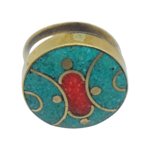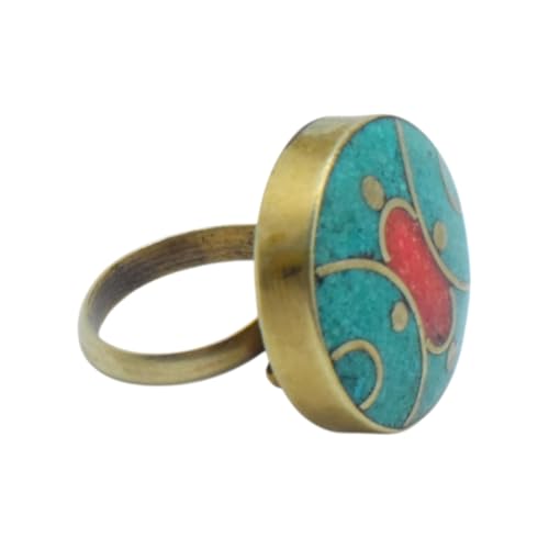 Indian Stones MA - Women's Luxury Ring Silver Mixed With Copper Less Than Caliber With Natural Gemstones Turquoise And Coral Free Size - Red Turquoise R24
