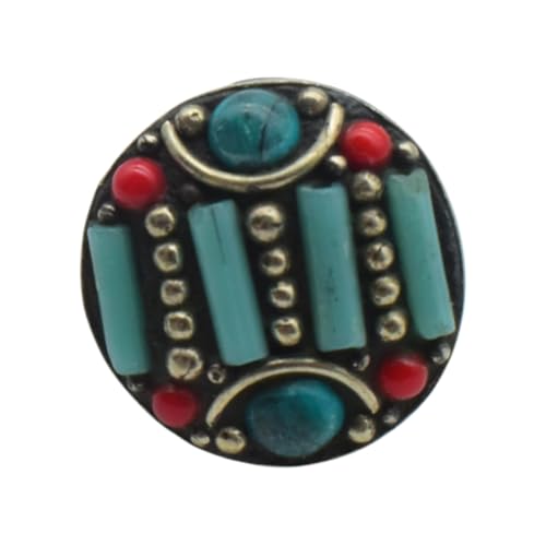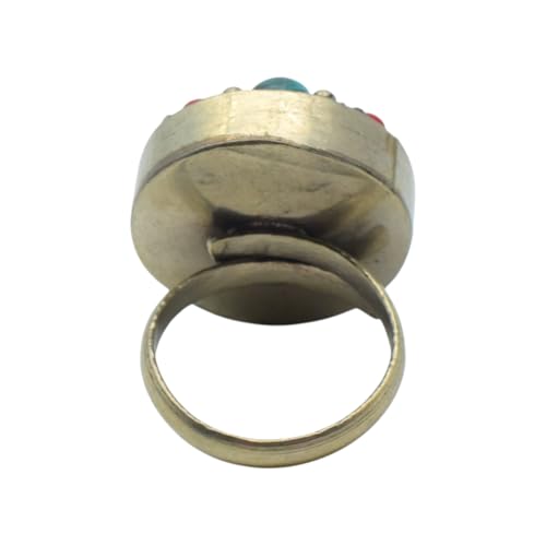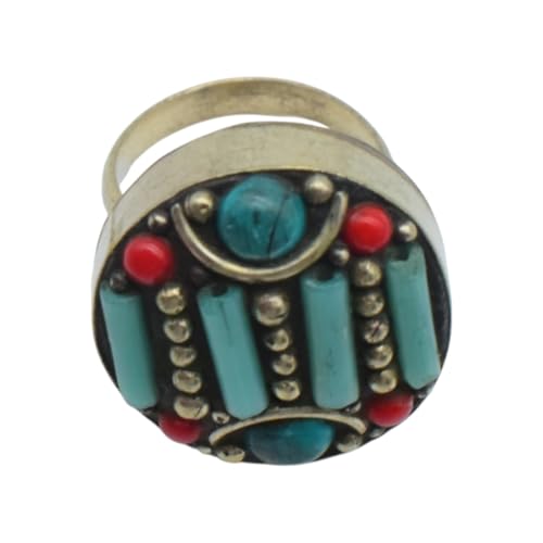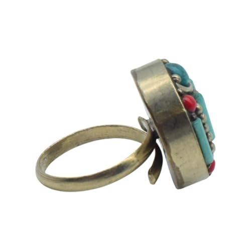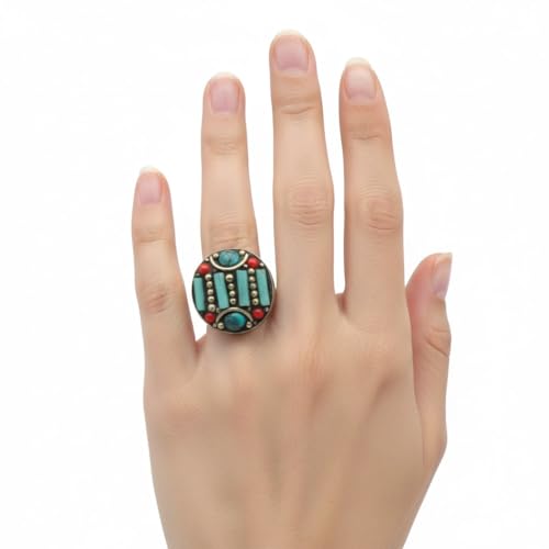 Indian Stones MA - Women's Luxury Ring Silver Mixed With Copper Less Than The Caliber Inlaid With Natural Gemstones Of Turquoise And Coral, One Size - Red Turquoise R9