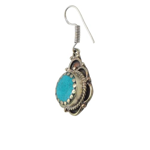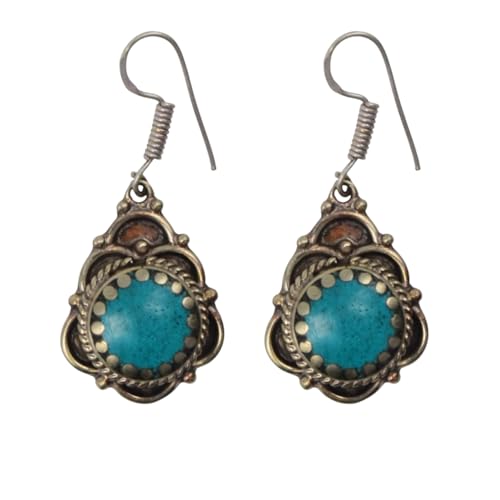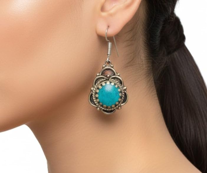 Indian Stones MA - Women's Luxury Silver Mixed Copper Less Than Caliber Earrings With Natural Gemstones Turquoise - Turquoise E26