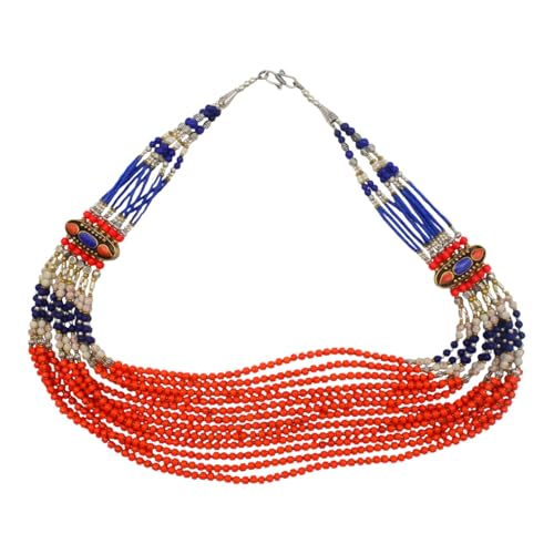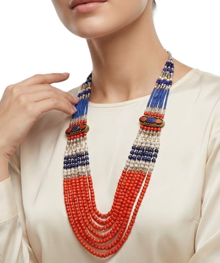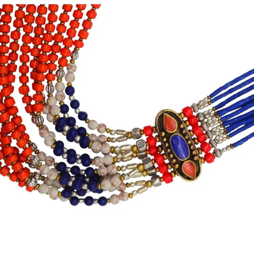 Indian Stones MA - Women's Luxury Silver Mixed Copper Less Than Caliber Necklace With Natural Gemstones Turquoise And Coral - Red Turquoise Awd1