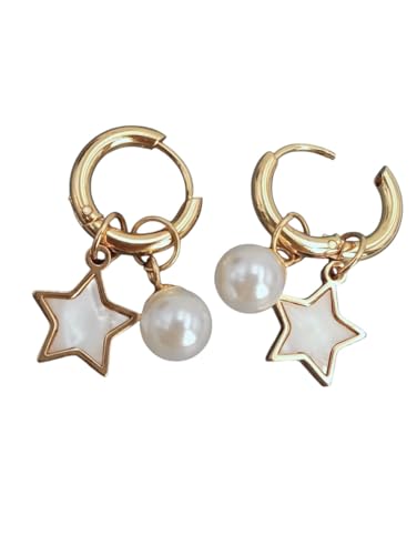 Generic - حلق اذن نسائي معدن على شكل نجمة بها خرز لولى ذهبي، للنساء