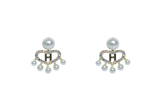 Generic - Women's Modern H Heart with Pearls Earring - White