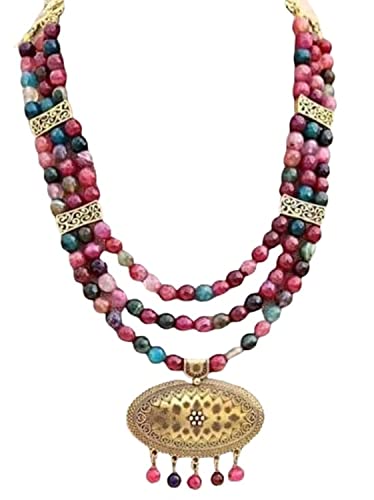 Generic - Women's Multi Tile and Color Natural Onyx Necklace
