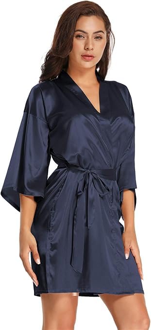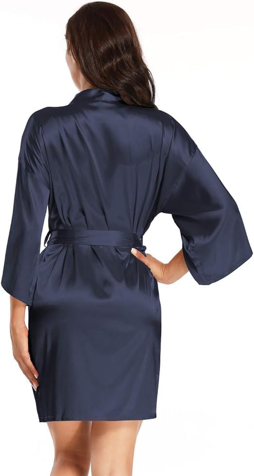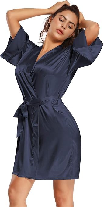 Generic - Women's Navy Blue One Size Satin Short Lingerie Robe Wide Sleeve 50:90 KG
