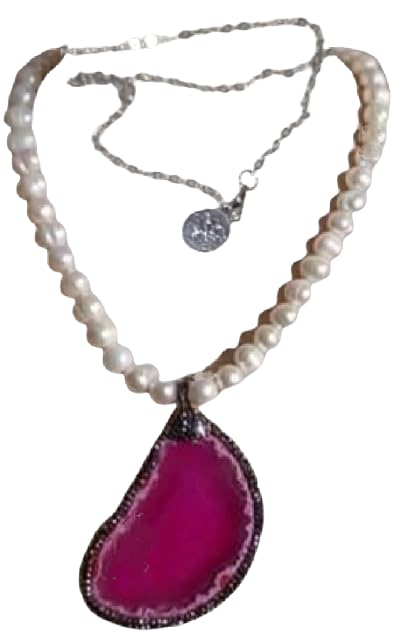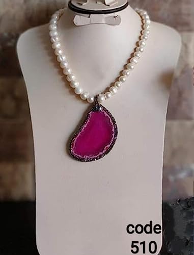 Generic - عقد نسائى من الؤلؤ الطبيعى بقلاده العقيق ال اي سي زهري