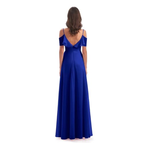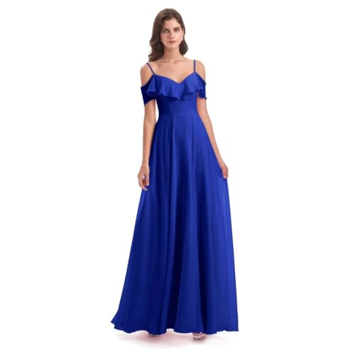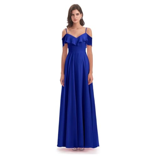 Generic - Women's Off Shoulder Royal Blue Chiffon Long Evening Dress with Lining and Back Zipper Ruffle