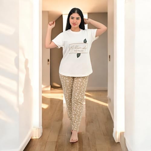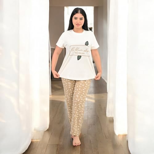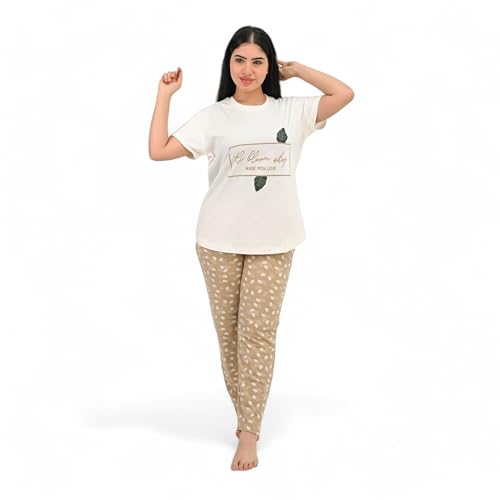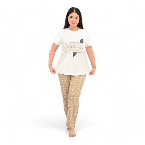 Generic - طقم بيجامة حريمي - بيجامة للنساء صيفي - طقم 2 قطعة بنطلون وتيشيرت - بأشكال مختلفة ومصممة خصيصا لتوفير الراحة في النوم (بينك, S)