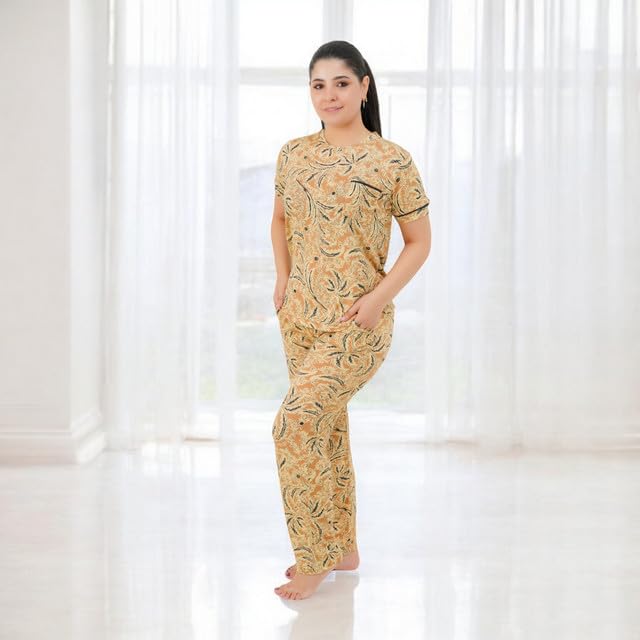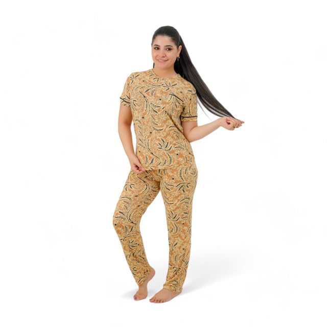 Generic - طقم بيجامة حريمي - بيجامة للنساء صيفي - طقم 2 قطعة بنطلون وتيشيرت - منقوش بروسومات مختلفة ومصممة خصيصا لتوفير الراحة والانتعاش في النوم كود 7091