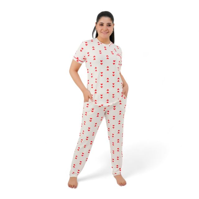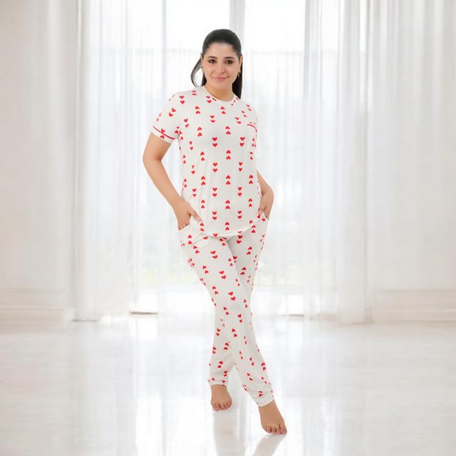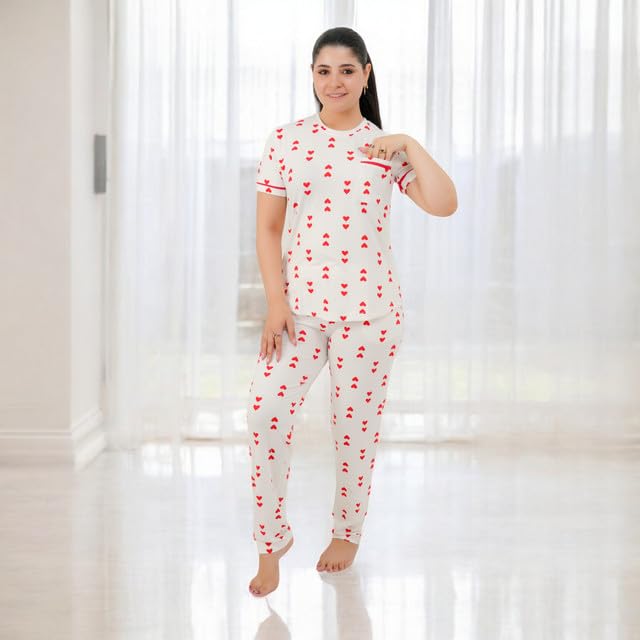 Generic - Women's Pajama Set - Pajamas for Women Summer - Set of 2 Pants and T-Shirt - Patterned with Different Graphics and Specially Designed for Comfort and Cooling in Sleep Code 7092