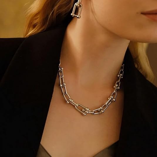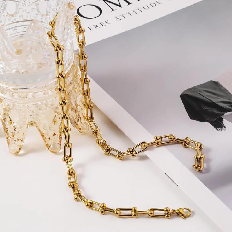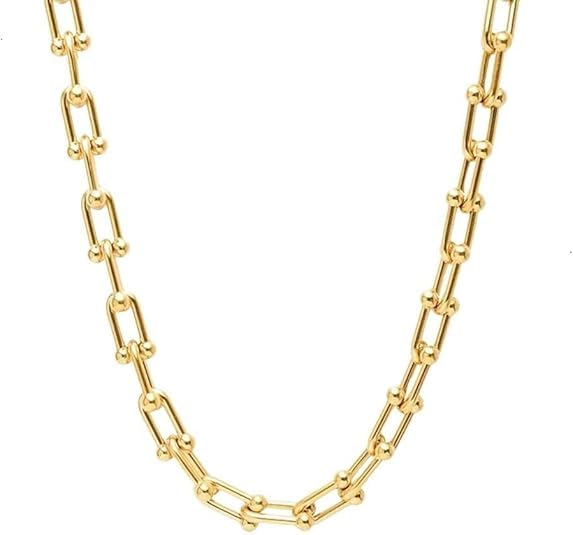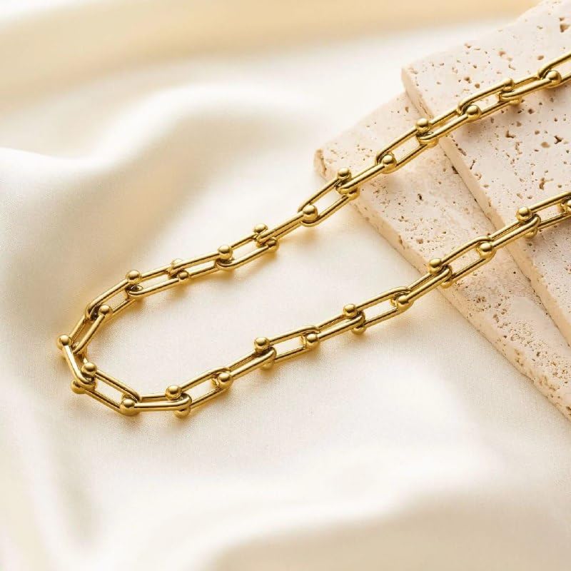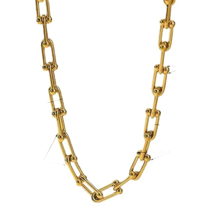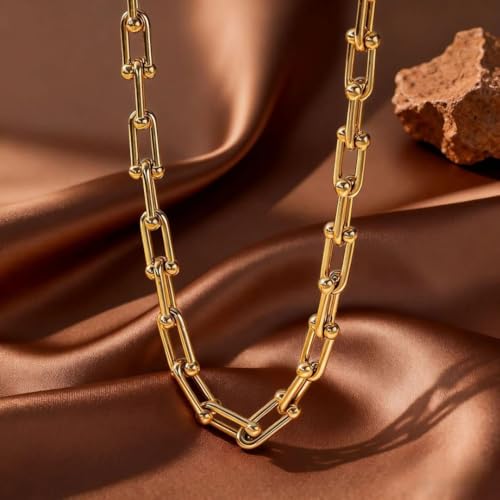 Generic - Women's Paperclip Chain Necklace | Gold Plated Chain for Women, Thick Double Ball End Chain, Luxury Combination, Birthday Gift, Stainless Steel