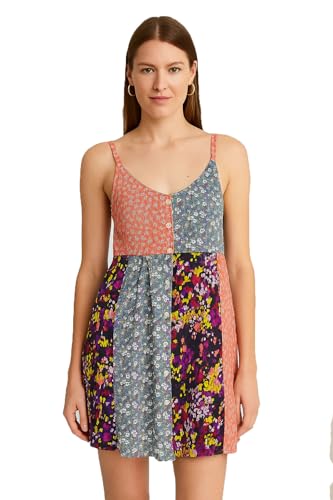 Generic - فستان نسائي من الشيفون مزين بالزهور، فستان صيفي قصير بدون اكمام مع اشرطة رفيعة وازرار امامية، فستان صيفي كاجوال مبطن بالكامل (توماس اند سبليندور)
