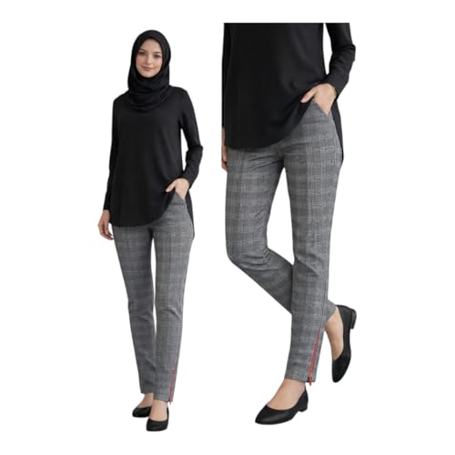 Generic - Women's Plaid Pants with Red Zipper, Fashion and Comfortable Slim Fit Pants