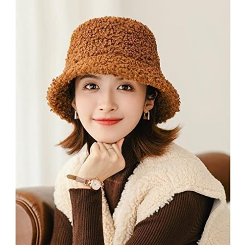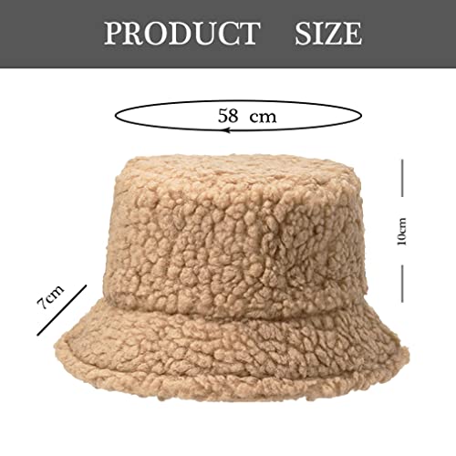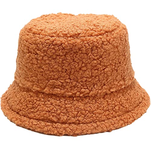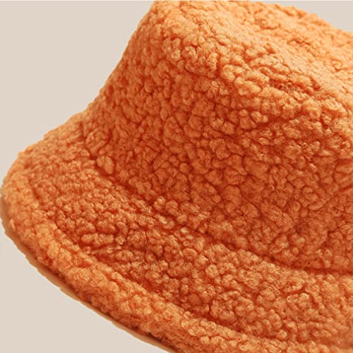 Cozyan - Women's Plush Fishing Hat Winter Hat Fluffy Bucket Hat Warm Fishing Hat Winter Fishing Hat Women's Faux Fur Bucket Cap Warm Hat with Wide Brim Fluffy Hat, orange, 58