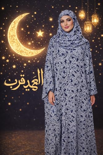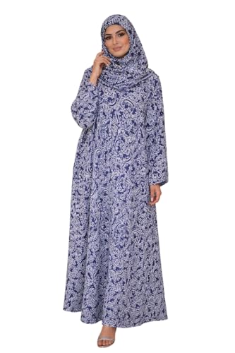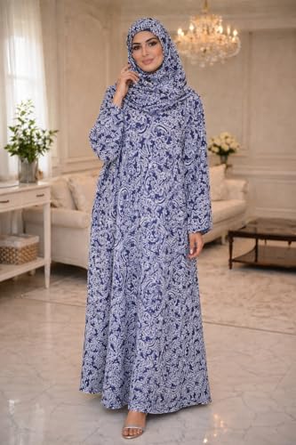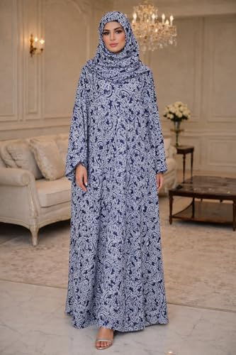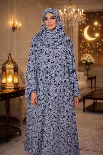 Generic - Women's Prayer Dress with Hijab, Blue Paisley Print, Long Sleeve Maxi Abaya, Islamic Worship Garment Set