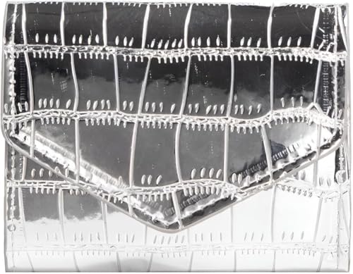Generic - محفظة نسائية جلدية فاخرة بتصميم التمساح، حافظة بطاقات فضية اللون مع جيوب متعددة للبطاقات الائتمانية والهوية (فضي)