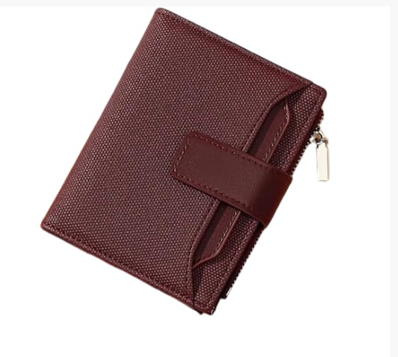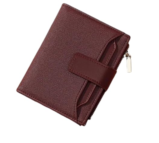 GOGO.EG - محفظة كانفاس مع جلد للنساء، بتصميم كلاسيكي باللون الأحمر، مع فتحات متعددة للبطاقات وإغلاق بالسحاب