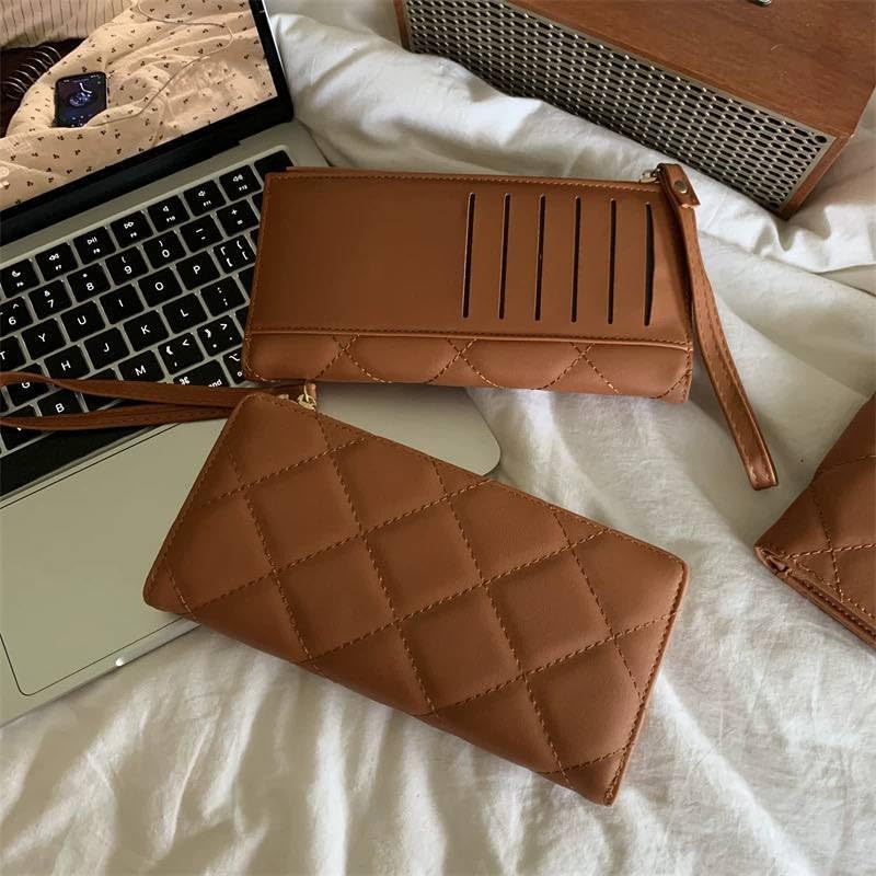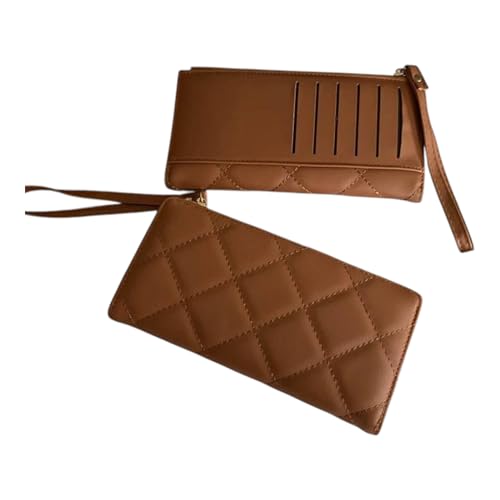 Generic - Women's Quilted Leather Handbag, Brown, with Zipper, Small Shoulder Bag with Striped Design