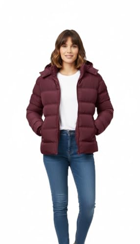 Generic - Women's Quilted Puffer Jacket, Burgundy, Hooded Winter Coat