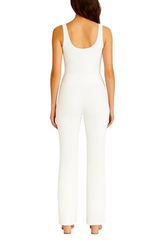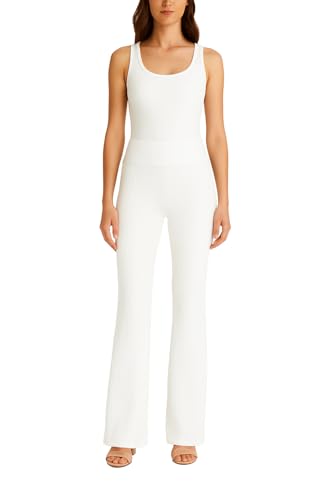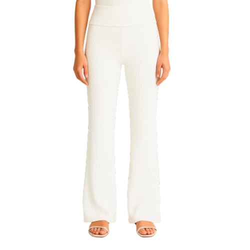 Generic - Women's Ribbed Wide-Leg Trousers, High-Waisted, Soft Stretch Fabric, White