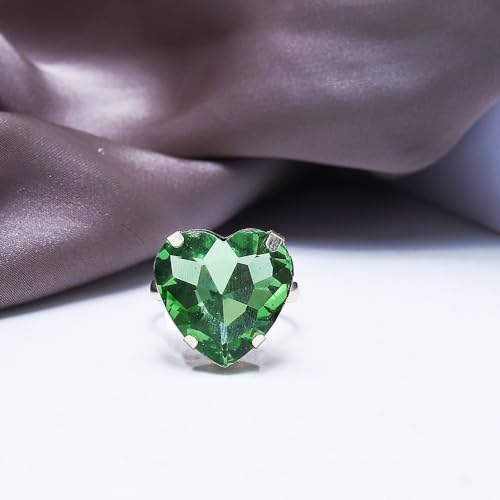 Generic - Women's Ring Stone Embellished Heart Crystal Free Size Green Color