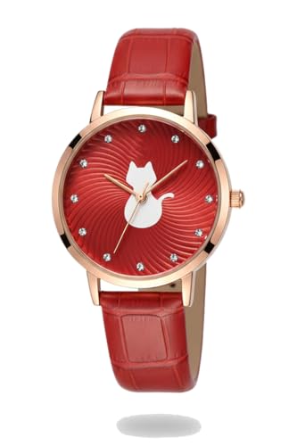 Generic - ساعة بمينا دائري وسوار جلدي للنساء - تصميم متطور وخفيف الوزن
