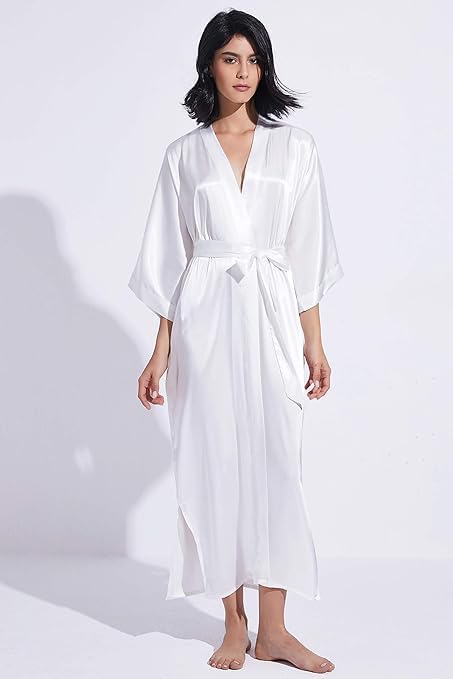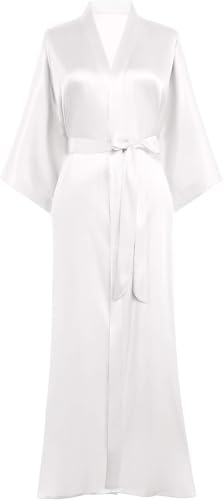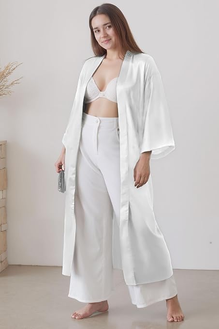 Generic - Women's Satin Long Robe with Wide Sleeve Lingerie White One Size 50:90kg