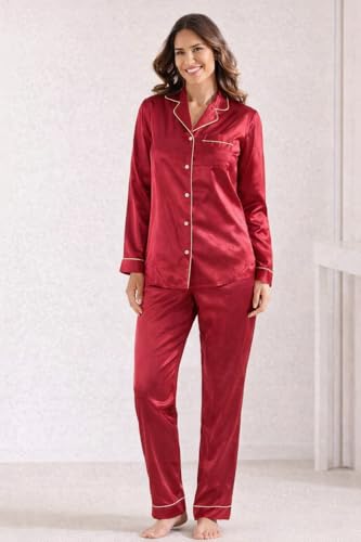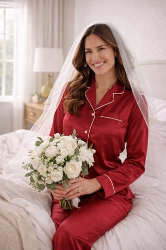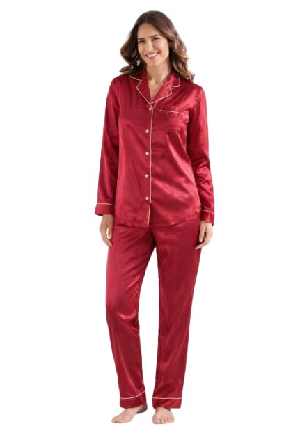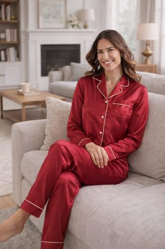 Womens Satin Pajamas Burgundy Red Set of 2, Relaxed Fit 80KG - One Size - Model #672-06
