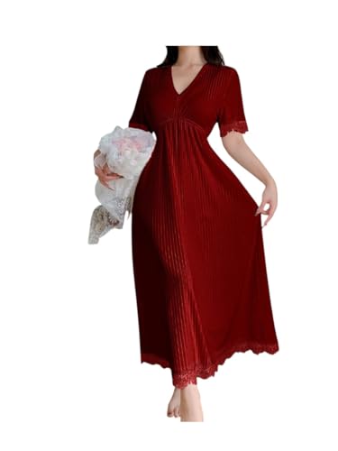 Generic - Women's Satin Stretch Nightgown - Different Colors Glitter Lace Trim